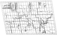 Map from Cutter's HistoryThis map of Jaffrey accompanied Daniel B. Cutter's History of the Town of Jaffrey, New Hampshire…1749-1880 which appeared in 1881. There's no indication who the cartographer was which is unfortunate as the map contains some useful information: The lots and ranges are given along the margins; the 13 school districts are delineated and the schoolhouses located; the cemeteries (including the Small Pox Cemetery) are located; and roads and homesteads are shown as well. The railroad, the major ponds and lakes and the Contoocook River are named. |