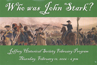 On February 12, 2026, Dr. Robert Goodby of Franklin Pierce University will give a talk on the Abenaki in Jaffrey. Native American artifacts recently donated to the Jaffrey Historical Society by the Jaffrey Library will be on display. These items were last displayed at a talk in April of 2014. Photos from that talk may be found on the JHS Smugmug Site.